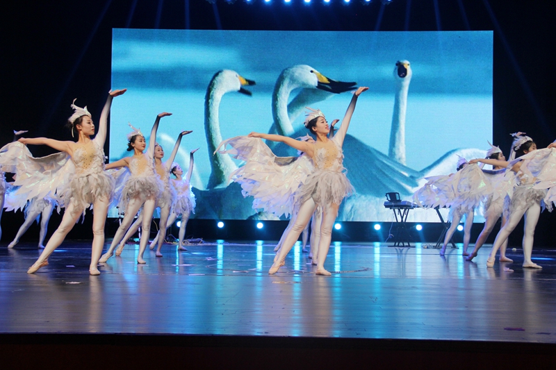 晚会以一段精彩的舞蹈《水鼓舞》将同学们带入欢庆的氛围中。在观众的掌声中太阳集团tyc9728经理苑玉洁上台发表了晚会致辞。晚会流光溢彩,精彩纷呈。优柔华美的舞蹈《水袖舞》让观众如痴如醉,姚雨老师的女声独唱《时间都去哪了》让人们不禁想起远在他乡的父母,器乐合奏《映山红》展现了我国与西方乐器的独特魅力,少儿舞蹈《大手拉小手 环保时装秀》更是充满了童真与创意,诙谐的小品《慢半拍》使得台下观众笑声不断,帅男靓女们的《T台秀》、《Fire》、《最炫民族风》等节目活力四射、动感十足,舞蹈《天鹅之城》把三门峡美丽的白天鹅风姿展现得淋漓尽致,师生同台节目歌伴舞《高山流水》动人心弦,三门峡北斗乐队为我们带来的《我的未来不是梦》更是把晚会推向了高潮,最后两校合唱歌曲《友谊天长地久》为本次晚会画上一个圆满的句号。近百名师生的倾力演出,为到场观众带来了精彩绝伦的一场视觉盛宴。校领导慰问了演员,并与演员们合影留念。