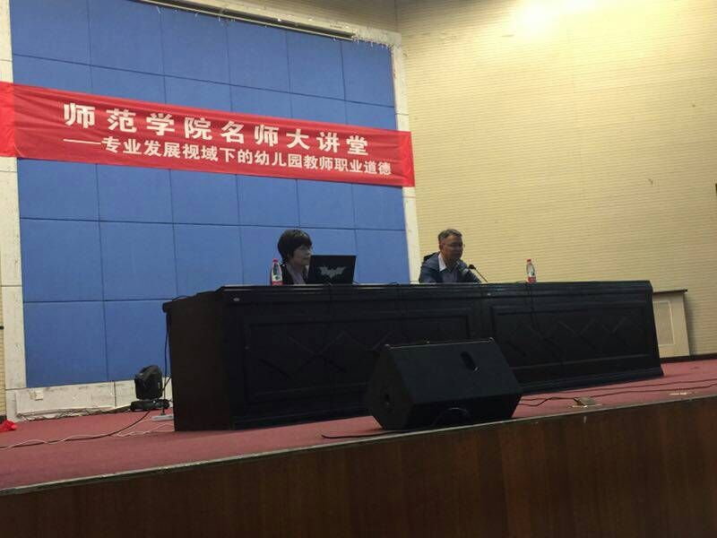 梁教授从教师专业化的含义、教师专业的发展入手,从幼儿园教师应具备的儿童观、知识观、教师观的分析,提出了“爱”、“敬”的职业道德要求。指出“爱”不仅仅是一种情感,更是一种能力;“敬”不仅是敬畏法律法规,更是敬畏生命、敬畏自己的职业。她把专业理念要求和职业道德有机融合,又运用非常丰富的案例、名言、科学数据进行阐释,还进行了有趣的互动,赢得了听众的阵阵掌声。