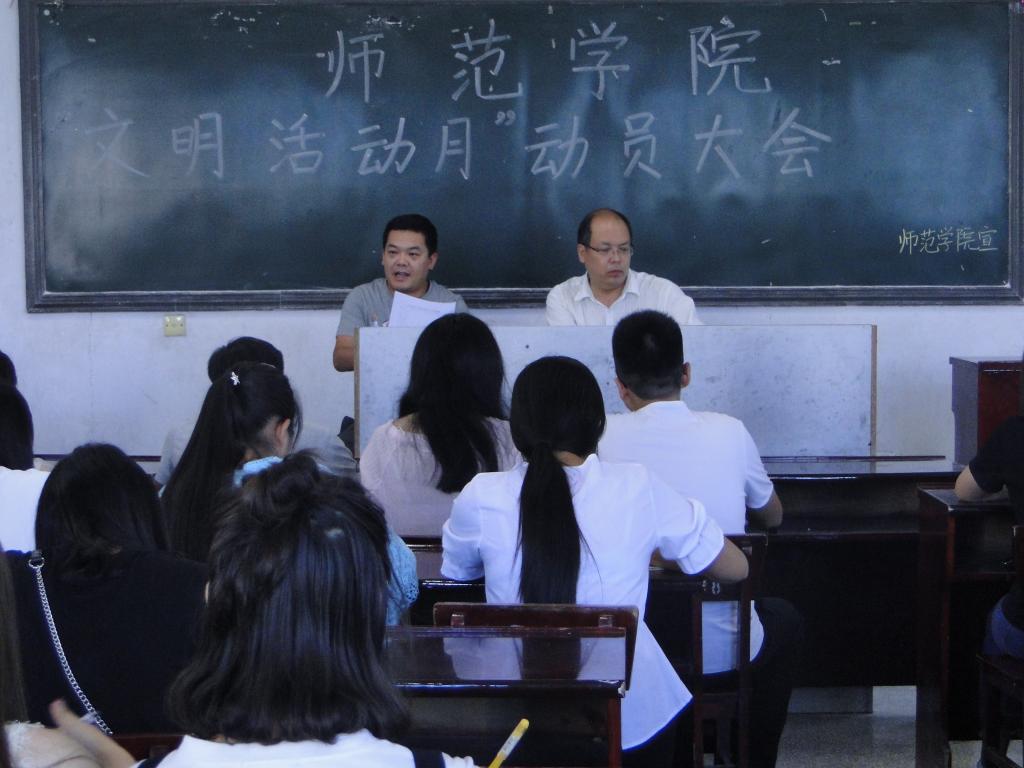 为促进学校优良班风、校风的形成,再掀文明、守纪、尊师、爱校的热潮,使员工养成良好的行为习惯。2017年9月21日下午三点,太阳集团tyc9728于5215教室开展了“文明教育养成”动员大会。出席本次活动的人员有:樊卫兵书记、林博科长、部分辅导员以及全体15、16级团学干。