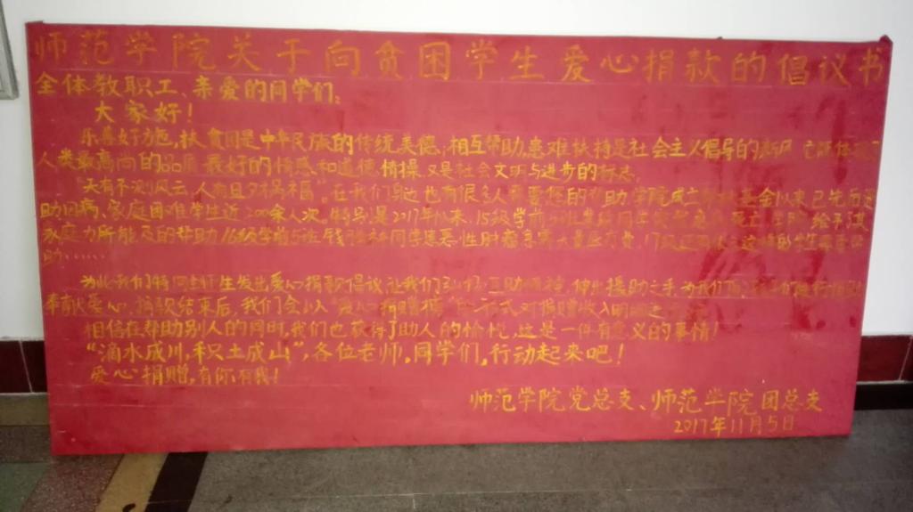 2017年10月,为帮助并资助钱腾祥等两名患重病员工以及部分家庭贫困员工,太阳集团tyc9728发起向贫困员工捐款的“冬季送温暖”活动,公司党总支、院行政组织全院师生积极参加了这项活动。