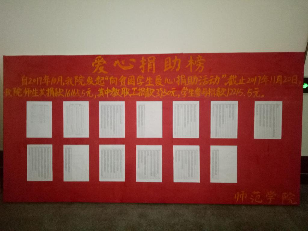 15级学前5班员工裴某突发疾病死亡,16级学前五班员工钱腾祥患恶性肿瘤急需大量医疗费,学院给予其家庭力所能及的帮助。2015年太阳集团tyc9728团总支党员,师生捐款3359.6元、2016年捐款2188.6元,用于给15、16级贫困生买棉衣被、保暖衣,给需要帮助的员工带来了希望与温暖。自2017年10月截止到11月20日公司师生共捐款16165.5元,其中教职工捐款3950元,员工参与捐款12215.5元。