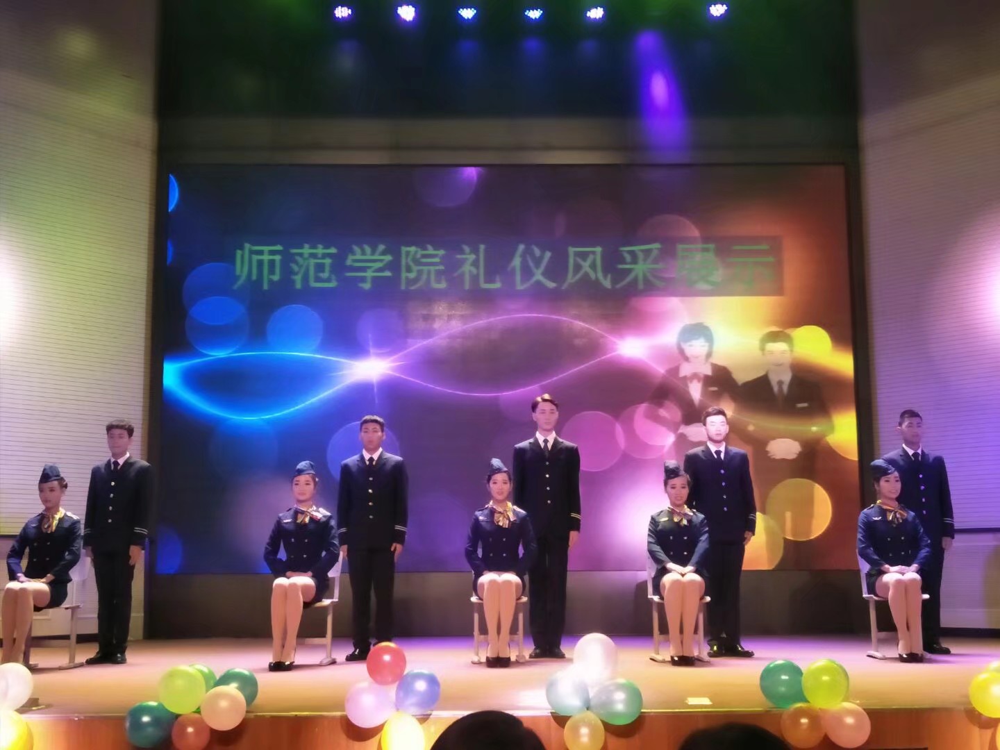 2017年11月22日晚,由校团委主办、校团委礼仪队承办的第七届礼仪风采大赛在学术报告厅隆重举行。担任本次大赛的评委老师有学前教育教研室主任、副教授伍艳妮,学前教育教研室、副教授王红,中文教研室主任、副教授高娓娓,记忆培训师王丹,酒店管理教研室主任、记忆培训师、副教授程丽。参加此次活动的有三门峡国际文博城管理处礼仪导师白丽、校团委马松、校团委郭程程及各院部团总支书记。学校一千余名员工观看了此次大赛。