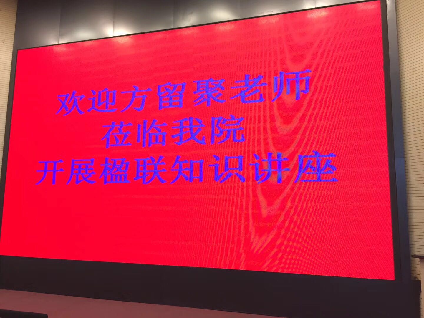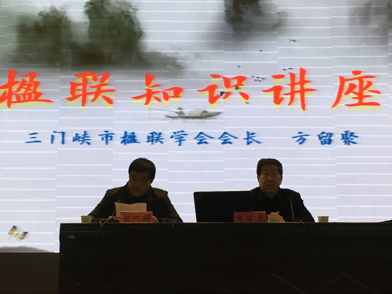 方留聚老师热心传统文化事业,并致力城市楹联文化建设,匠心独运,殚精竭虑,在三门峡的城市文明建设方面,起到了举足轻重的作用。会上,方老师从楹联的起源、基本特征、基本格律、楹联禁忌等方面进行了为时两小时的讲解,内容深入浅出,举例鲜明生动,随时即景赋联,他还回顾了楹联文化在三门峡的地位,瞻望了楹联文化在我市及全国的前景,受到与会老师和同学的热烈欢迎。报告厅内气氛热烈,不时爆发出阵阵掌声。