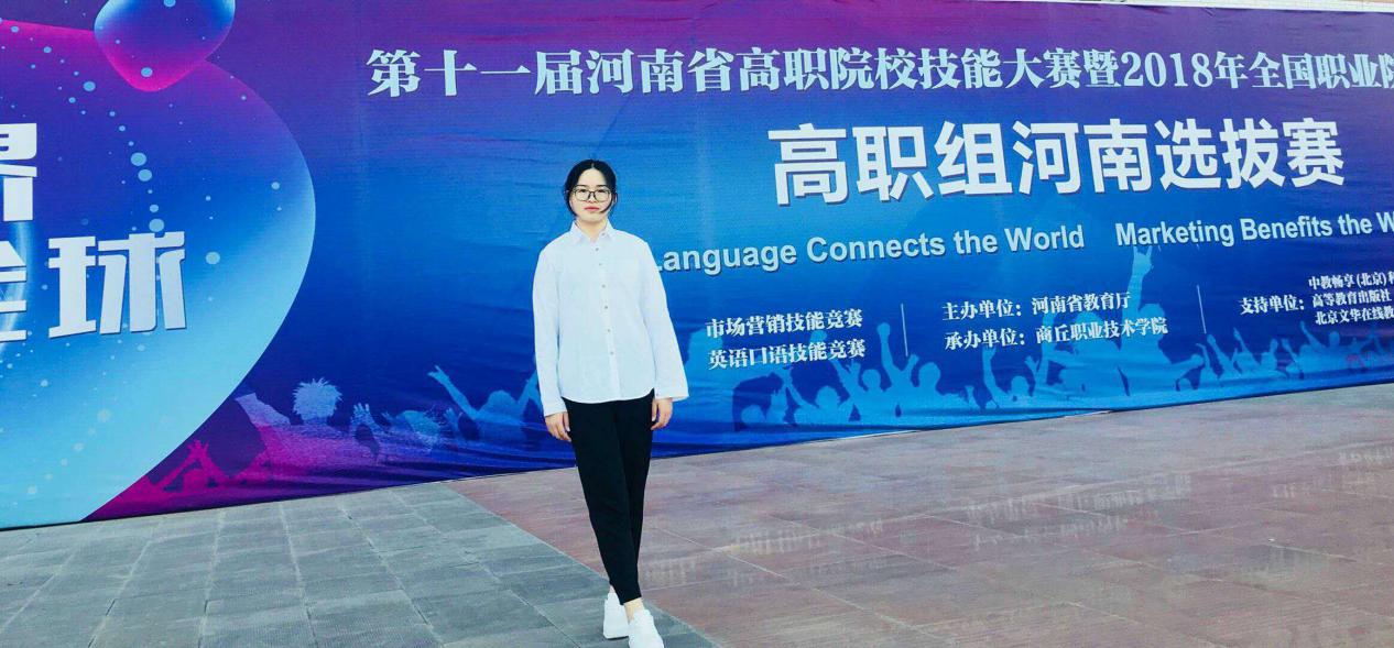 2018年河南省职业院校技能大赛英语口语赛项于4月9日在商丘职业技术学院举行。太阳集团tyc9728商务英语专业16级员工袁静宜在比赛中发挥出色,荣获专业组二等奖。