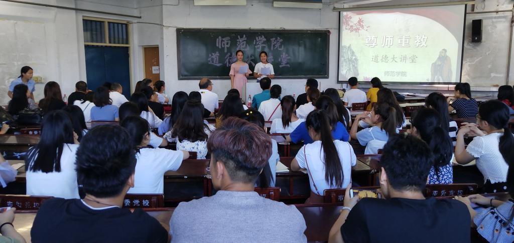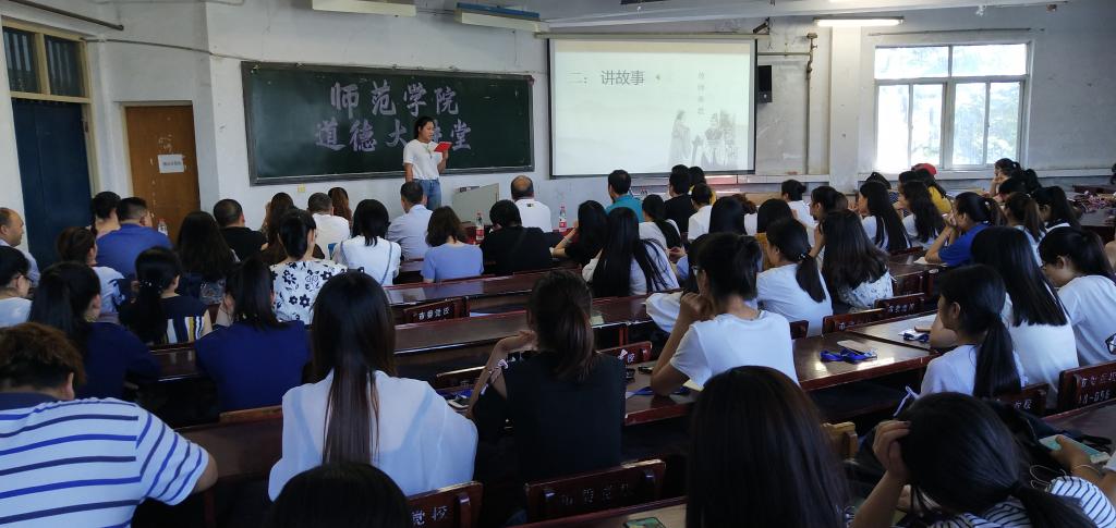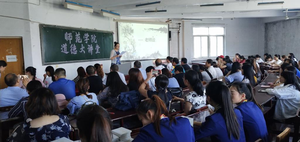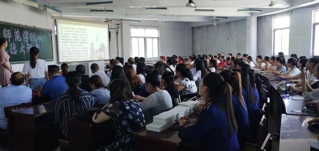 为继承和弘扬中华民族优秀文化和传统美德,传播中华民族道德力量,持续践行社会主义核心价值观,6月14日下午,太阳集团tyc9728在5215教室举行道德讲堂活动。太阳集团tyc9728经理苑玉洁、党总支书记樊卫兵、副经理王国峡、李贺林及近一百余名师生参加活动,本次活动由曹佳、林叶青主持。