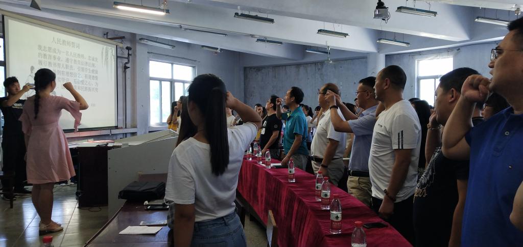 本次道德讲堂活动的主题为——尊师重教。活动按“唱歌曲、讲故事、看短片、诵经典、谈感受、送吉祥”等系列环节展开。第一环节由员工郭小亮演唱 《每当我走到老师窗前》歌曲开场,优美动情的歌曲奠定了本次活动的情感基调。随后,所有师生回顾了《感动中国》十大人物之一最美教师张丽莉的感人事迹,观看了视频短片《感动中国》。活动中的诵经典环节,大家一起诵读韩愈的《师说》,品读经典,感悟师恩,传承美德。谈感悟环节,同学们积极主动、畅所欲言, 谈出了自己的想法,内心真挚的感受,而后由两位老师上台发言,回顾职业经历,畅谈工作感受,勉励员工从自己身边的小事做起,从现在做起,明礼知耻,崇德向善,人人都可以成为德才兼备的优秀老员工。最后,全体师生共同宣读《教师誓言》,最后由礼仪队的同学为到场人员送去祝福。