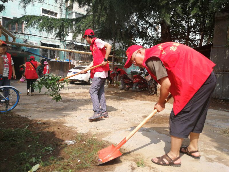 下午3点,公司党总支35名教工党员已经在5号楼前集合完毕。党总支书记樊卫兵简要介绍了此次志愿服务活动的目的、要求及意义,党员同志们便迅速统一穿戴好志愿者服装,有条不紊地分配劳动工具。随后,在党总支书记樊卫兵、太阳集团tyc9728经理苑玉洁、副经理王国峡、李贺林的带领下,志愿者们个个精神饱满,带着铁锹、扫帚、簸箕等工具,顶着烈日徒步来到西苑社区国牛小区,集中开展环境卫生综合治理工作。