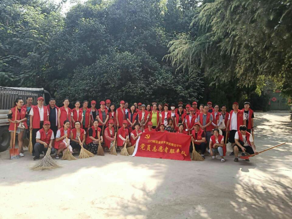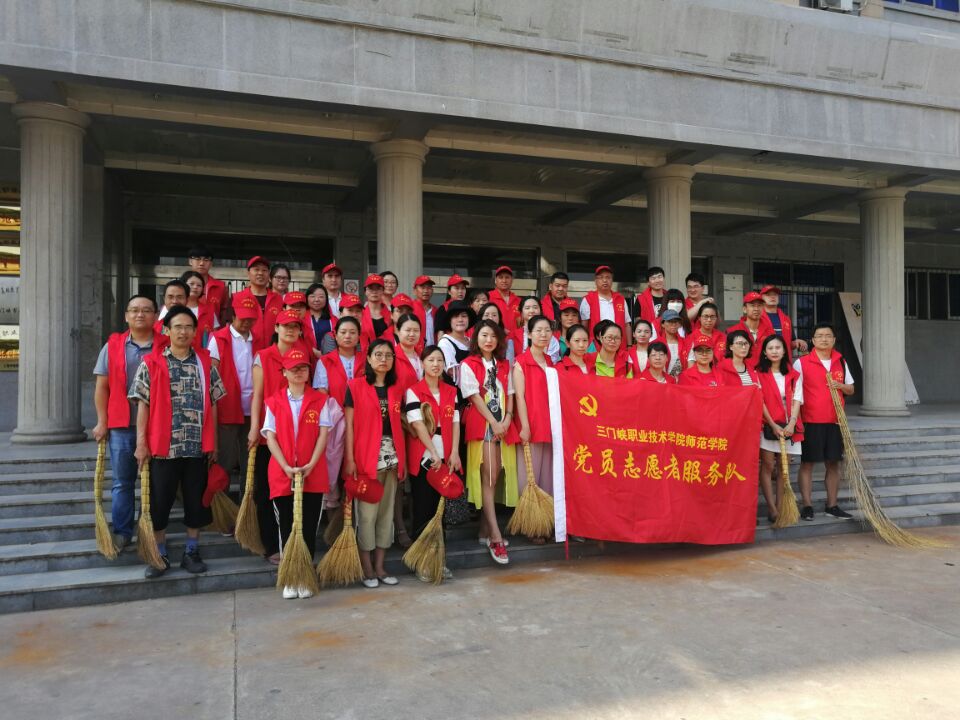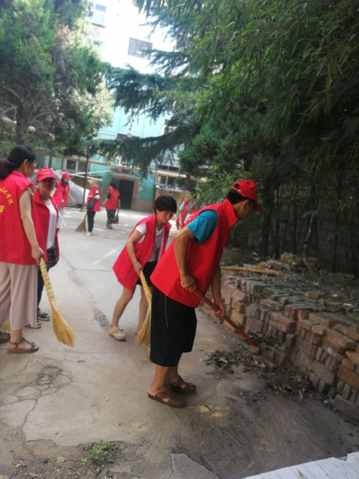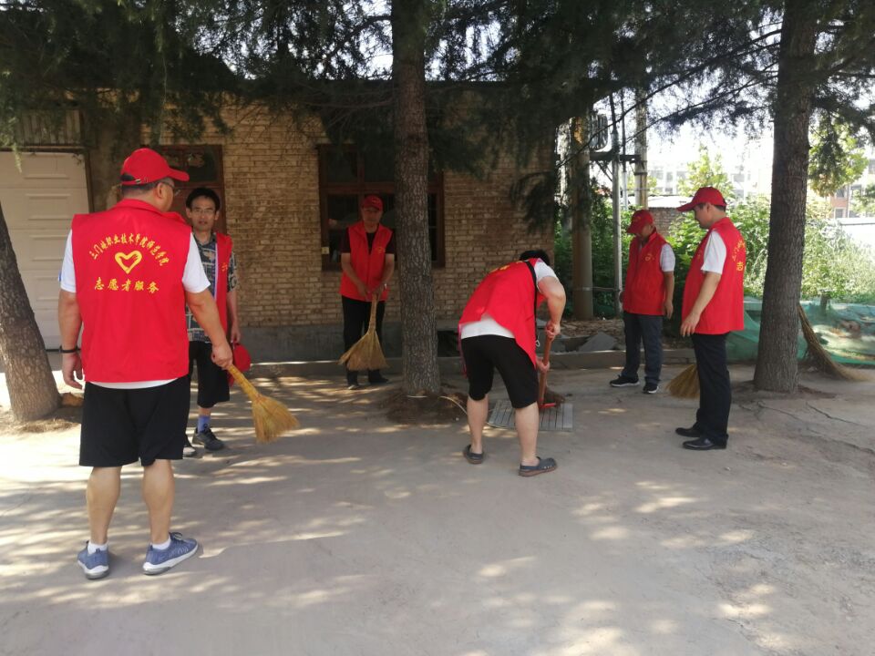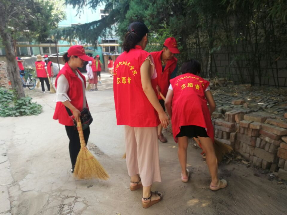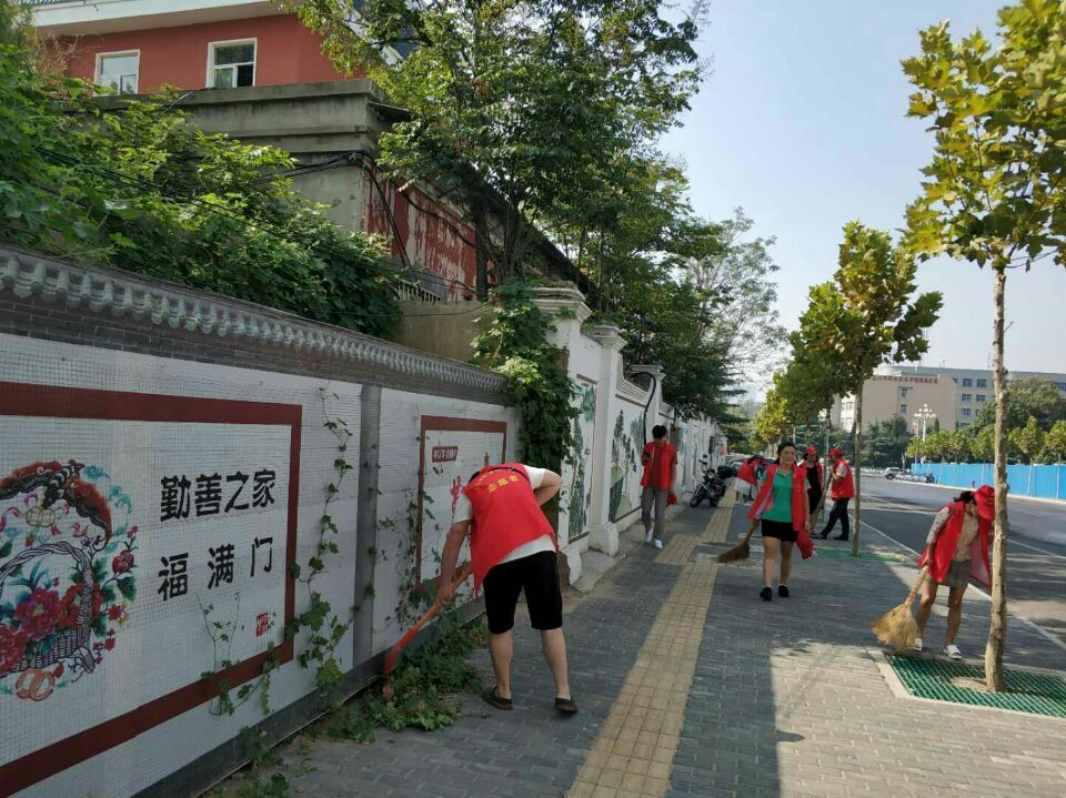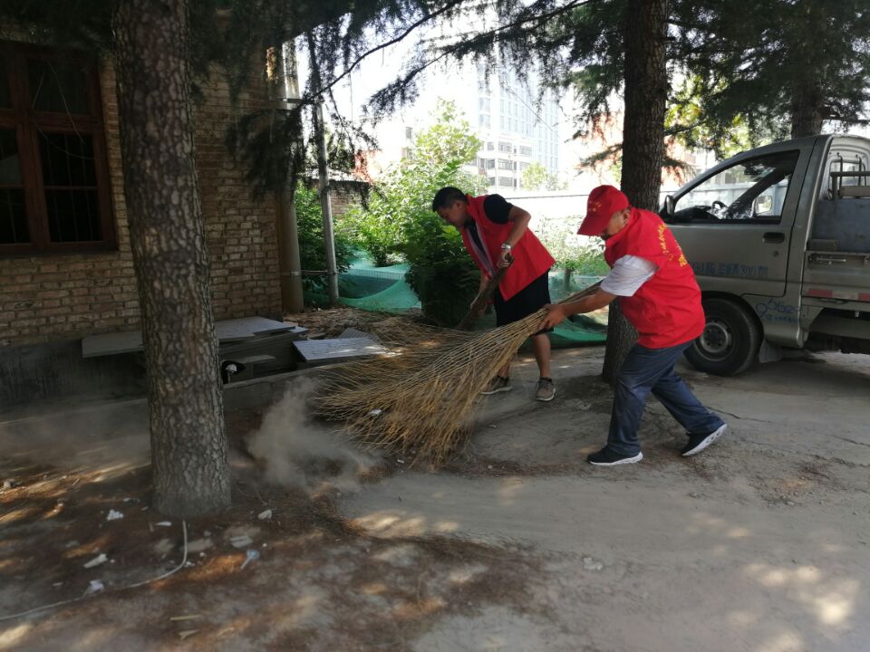 2018年8月27日上午,太阳集团tyc9728教师志愿服务团队50余人到市开发区国牛居民小区开展清扫垃圾、治理环境、靓化城市的活动。