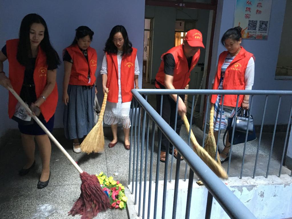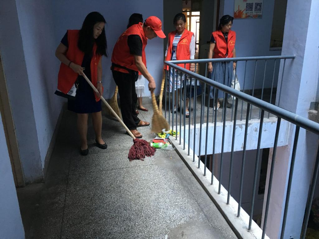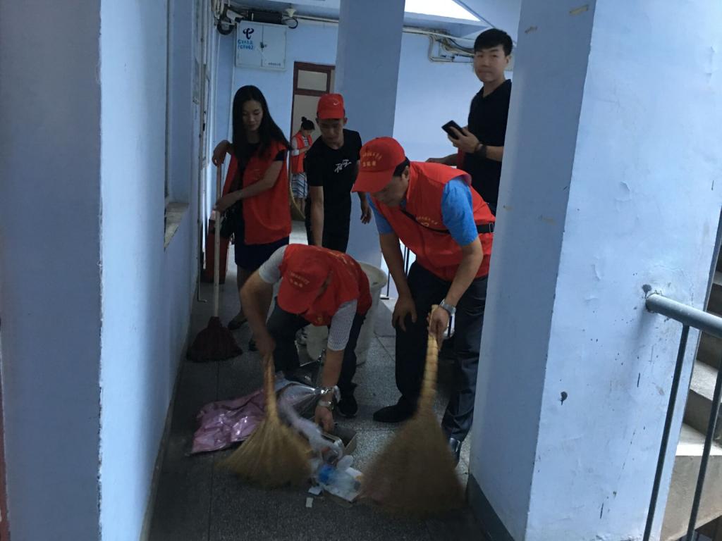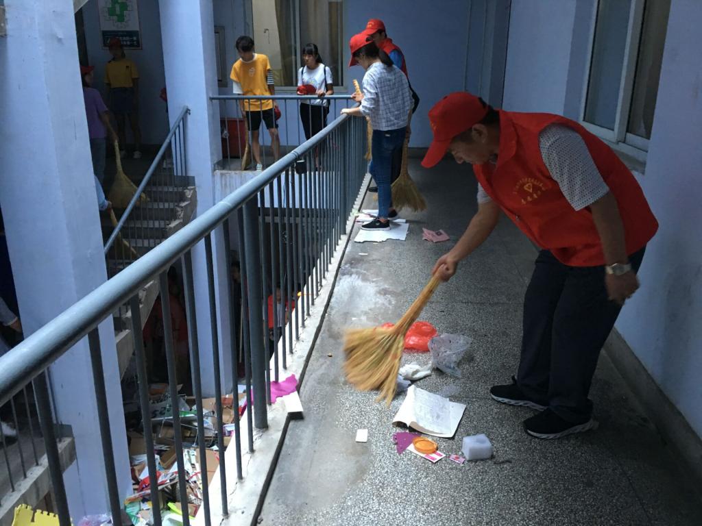 红马甲的靓丽色彩又一次闪现在校园!2018年9月6日,周四正午,太阳集团tyc972850余位老师身着红色志愿者服装,手拿扫帚灰斗,进入员工宿舍一号楼,开始了卫生扫除活动。