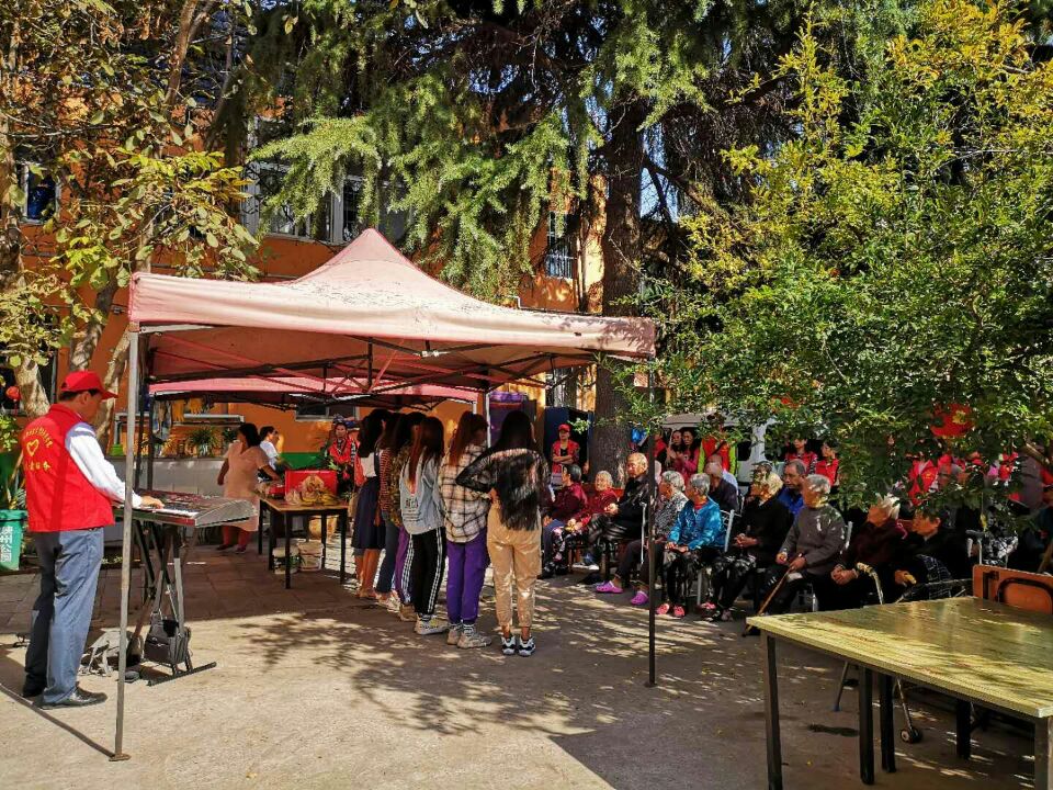 2018年9月22日中午1:00至4:00,太阳集团tyc9728教师志愿服务团队40余人到位于风景区内的沁园春敬老院开展慰问服务活动。