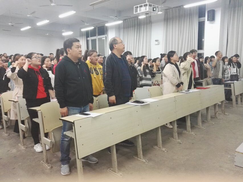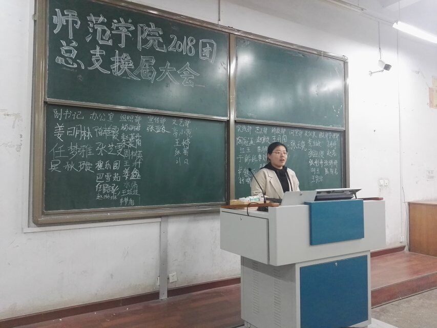 会议开始,樊书记首先对16级团干进行了表彰,充分肯定了她们的工作,,接着17级各部团干依次上台进行演讲,他们以激情昂扬的演讲展示自己的能力和工作经验,以积极向上的心态去完善每一件事情,并以较高素质体现自己,最后,高嘉璐老师发言和对新老团干的建议并总结本次大会,本次团干换届大会圆满结束。