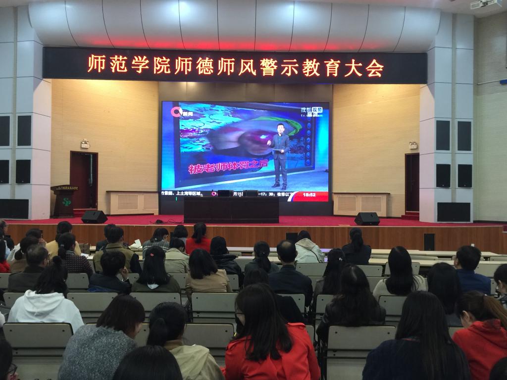 2018年10月24日晚8:30,太阳集团tyc9728在学术报告厅举行师德师风警示教育全体教师会议。总支书记樊卫兵主持会议并发表讲话。