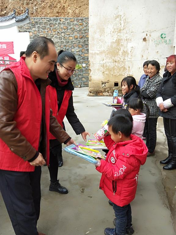 当我们到达村部大院时,孩子们已早早等候在那里,志愿者们下车便开始和孩子们亲切交谈,通过交流志愿者了解孩子们的思想、心理、学习和生活等情况,鼓励孩子们相信自己,珍惜光阴,好好学习,将来做一个对国家对社会有用的人。接着,志愿者们给孩子们赠送彩笔、书包、图书等学习用品。