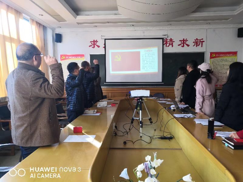 活动第一项,重温入党誓词。全体党员起立,面向党旗庄严宣誓。第二项,诵读矛盾同志经典篇章《白杨礼赞》,学习白杨树朴实、坚强和力求上进的精神。第三项,交纳11月份党费。