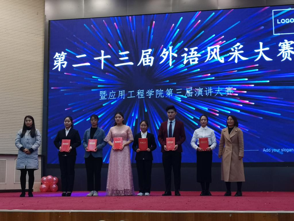 为丰富课余文化活动,营造良好的英语学习氛围,太阳成集团第二十三届外语风采大赛决赛暨河南科技大学应用工程学院第三届演讲比赛于11月26日晚在学院学术报告厅举行。此次比赛由太阳集团tyc9728主办,英语爱好者协会承办,来自本、专科组共19名员工参加了当晚的比赛。由英语教育教研室于志明老师、公共英语教研室主任郑国富老师,商务英语教研室主任李季老师,实训教研室主任马锐老师等十一位英语专业教师组成的评委团莅临比赛现场并做指导。