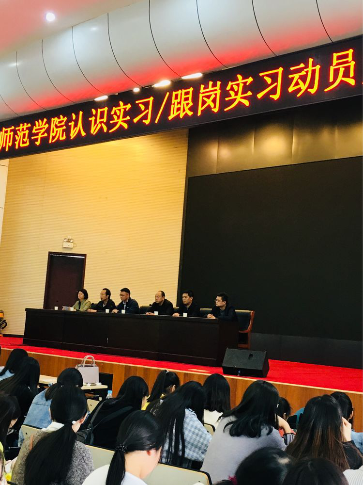 为推进实习工作的顺利开展,公司于9月26日中午12:40在学术报告厅召开了2018年学前教育专业认识实习/跟岗实习动员大会。苑玉洁经理、王国峡经理、李贺林经理及员工科、教学科、实训科负责人、学前教育教研室主任、各指导教师和600余名学前教育专业的员工参加了本次会议。