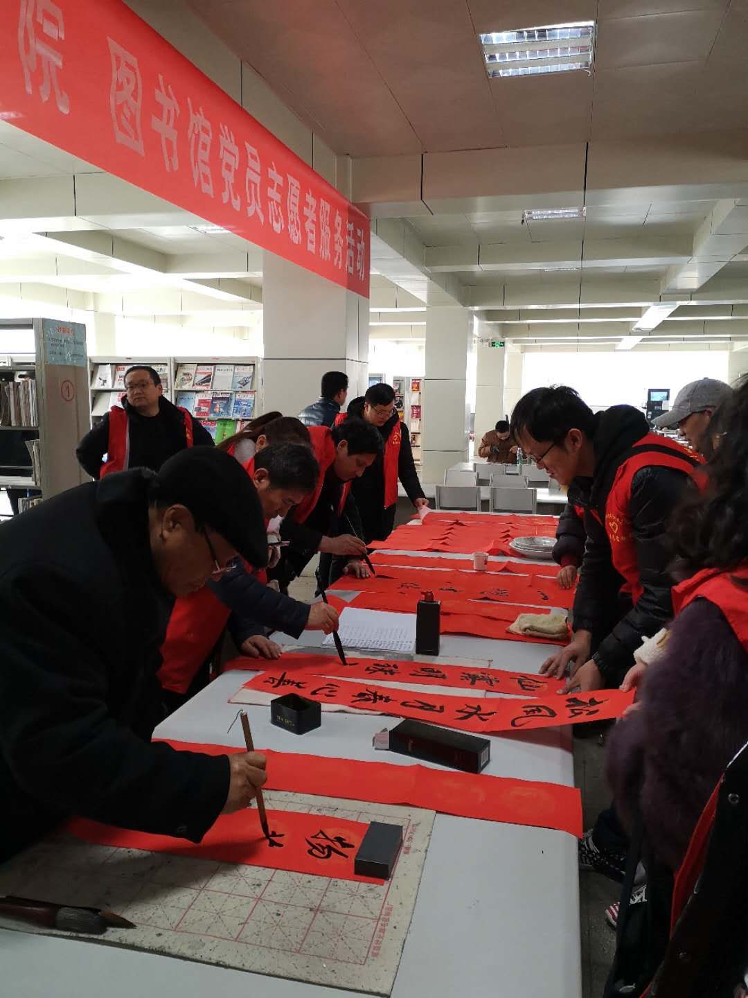 2019年1月28日,正值农历小年腊月二十三,三门峡市图书馆一楼大厅人声鼎沸,热闹不已,桌子上地板上铺满了墨迹未干的春联,整个大厅沉浸在新年到来之际的喜庆气氛中。早上8:30至12:00公司党总支与图书馆联合举行了“迎春接福”新春送春联党员志愿服务活动。太阳集团tyc972844名党员参加了此次活动。