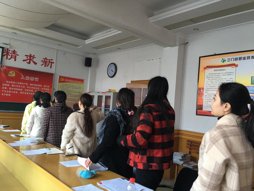 活动第一项,全体党员再次重温入党誓词,将誓词作为衡量自身行为的标准。