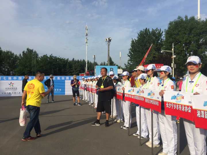 开幕式结束后,在志愿引领员的带领下,游泳队员们有序检录,有序走到横渡母亲河的起点,开始进行比赛。游泳队员在进行比赛的同时,志愿者们又在领队的带领下走到横渡母亲河闭幕式的地方等候游泳队员的到来,伴随着颁奖声此次志愿结束。