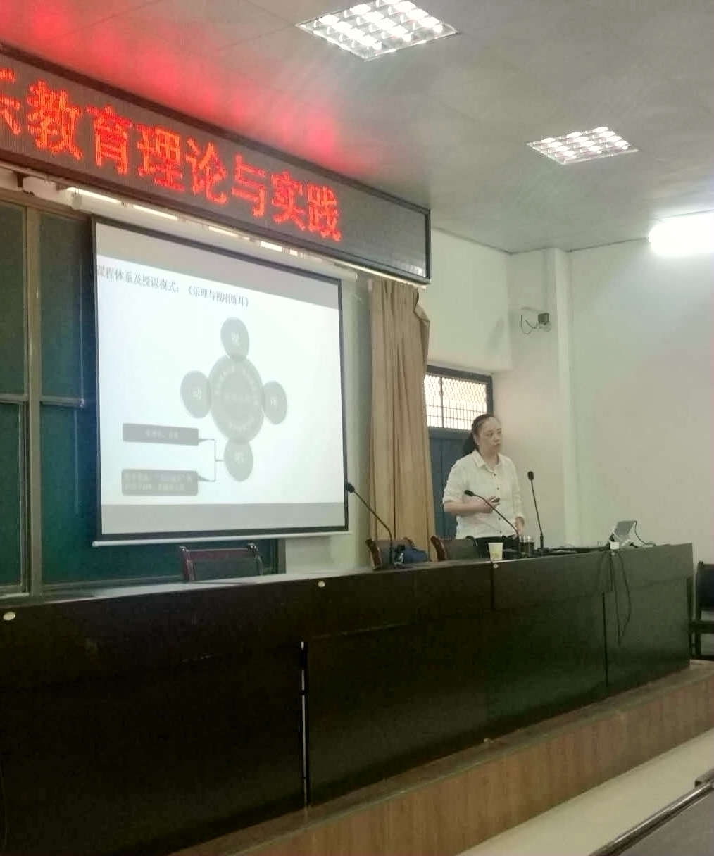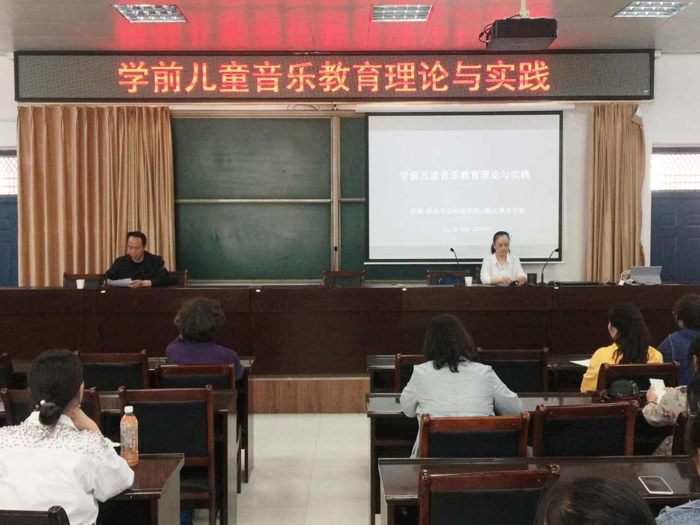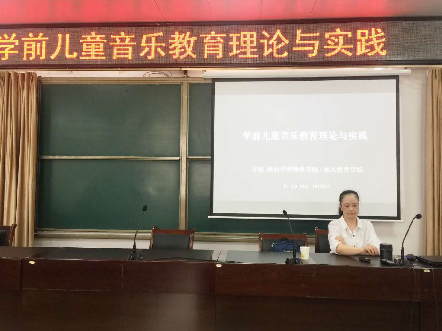 5月10日下午3点,太阳集团tyc9728在1106会议室举行了题为“学前儿童音乐教育理论与实践”的专题报告。主讲人齐颖教授毕业于德国爱尔兰根-纽伦堡大学哲学学院音乐学研究所,现任陕西学前太阳集团tyc9728幼儿教育学院艺术教育系系主任。报告由太阳集团tyc9728副经理王国峡主持,太阳集团tyc9728学前教育、音乐舞蹈教研室的教师以及学前教育专业的部分员工聆听了此次报告。