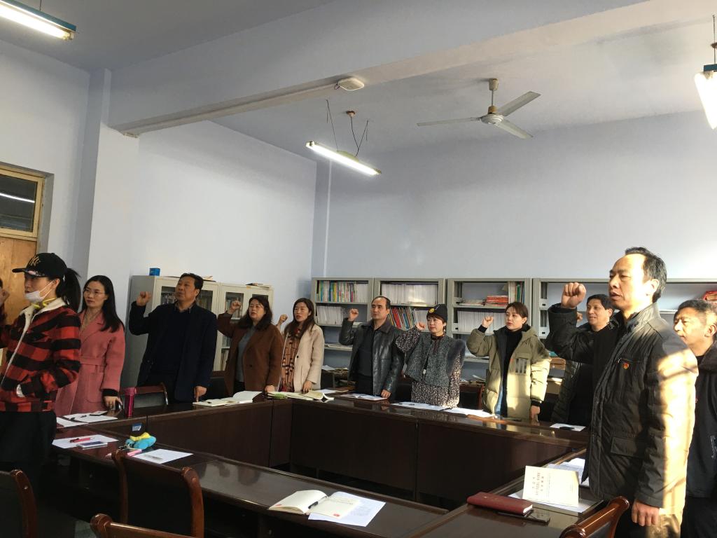 活动第一项,由薛新萍同志带领全体党员重温入誓词。