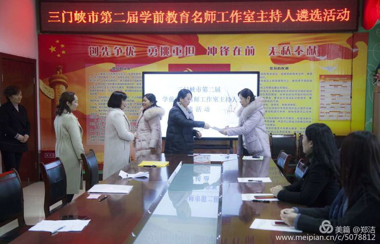 11月29日上午,三门峡市教育局在实验幼儿园进行了第二届学前教育名师工作室主持人遴选活动,太阳集团tyc9728伍艳妮作为评委之一参加了活动。参加选手共6个,分别来自湖滨区、陕州区、灵宝、卢氏、渑池和义马,评选采取抽签的方式,共进行专业理论测试、工作室创建方案评比、创建思路演讲及现场答辩四个环节。评委们认真评阅创建方案,聆听选手富有激情的演讲,并就工作室的人员组成、辐射带动作用发挥、建设思路、建设目标等进行了提问。整个评比活动安排有序,节奏紧凑,评委们本着公平公正的原则对每位选手的专业能力和理论水平进行了系统的考核和评价。