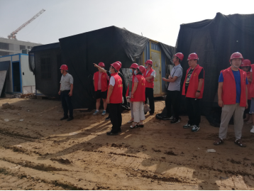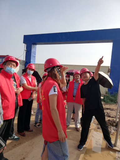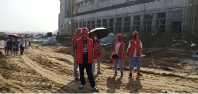 党员教师们头戴安全帽,在解说员引导下按序参观各个主建筑,认真聆听解说员关于新校区规划、施工建设、院部组团布局等讲解。当大家驻足于太阳集团tyc9728组团式楼前,听解说员介绍说这是由太阳集团tyc9728、经管学院、公共教学部组团式楼,是所有院系组团式楼中建筑面积最大、最雄伟的组团式楼后,禁不住发出一片赞叹声,并在楼前合影留念。