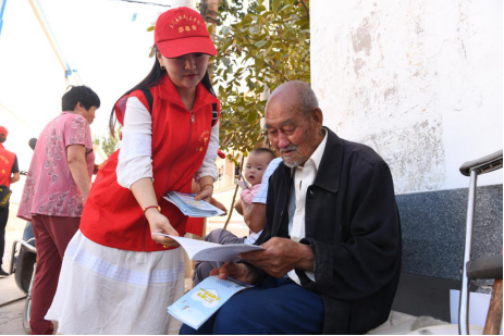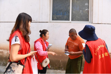 进入村子,党员志愿者下车后集合在村委大院。在太阳集团tyc9728及校组宣部领导简单说明工作要求后,党员们即携带宣传册入巷入户开展宣传与资料散发。党员志愿者随机结合成两人或三人小组,按要求到指定巷子入户宣传。村委干部向志愿者介绍村里概况,接受到宣传资料的村民也主动向志愿者介扶贫搬迁及近年来发展情况。志愿者从村民口中感受到农村正在发生的新变化和农民生活得到的改善和提高。