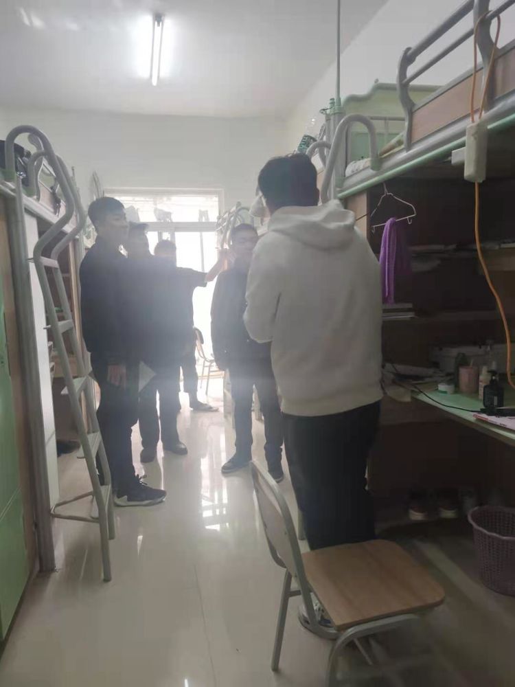 会议结束后,公司党总支书记樊卫兵、员工科科长林博带领辅导员对教室、员工宿舍的安全、卫生等情况进行检查。