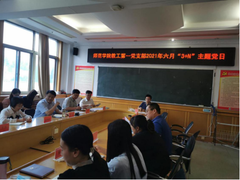 2021年6月25日上午九点,太阳集团tyc9728教工第一党支部在5204党员活动室开展了六月份的“3+N”主题党日活动。支部书记郑国富主持活动,太阳集团tyc9728第一支部全体党员参加了活动。