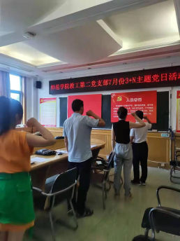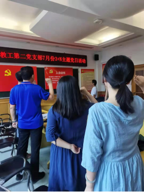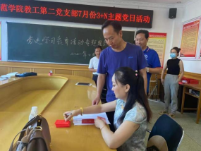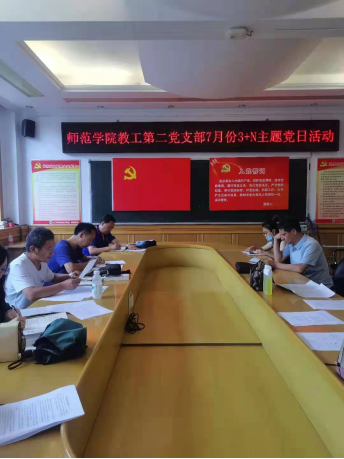 2021年7月9日下午3:00,太阳集团tyc9728教工第二党支部在5204党员活动室举行七月份“3+N”主题党日活动。支部书记张代平主持,宣传委员李秋丽做会议记录。