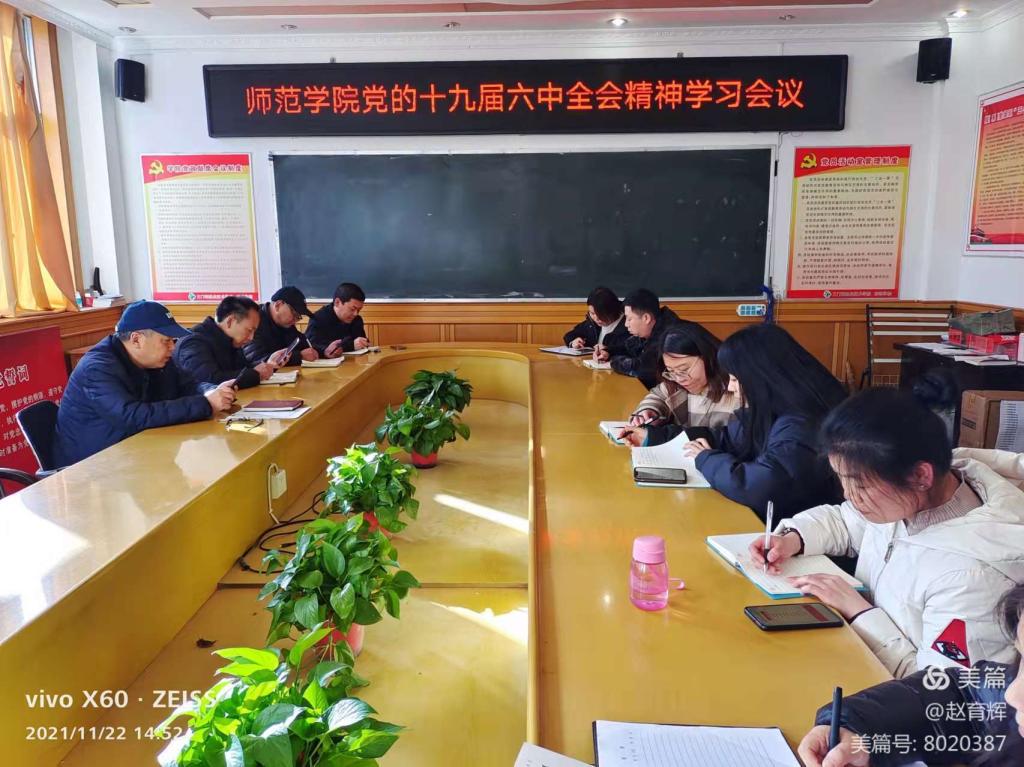 在学习中,参会党员一致表示,要认真学习贯彻党的十九届六中全会精神,把党中央决策部署不折不扣落实到实际工作中,从党的百年光辉历程中汲取伟大精神力量,明确理想信念,勇担复兴重任,为学校两大目标的顺利实现努力奋斗。