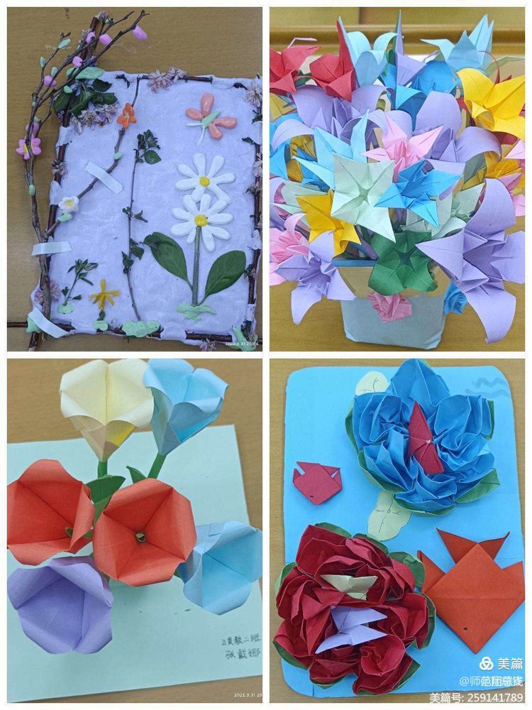其次,同学们精心构思,大胆创作。做出了一幅幅、一件件各具特色的黏土画、折纸、衍纸画等精美手工作品。同学们心灵手巧,做出的作品栩栩如生,使人拍手称赞