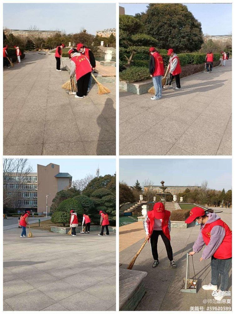 传承弘扬雷锋精神,书写新时代美丽篇章。活动开始,同学们积极踊跃参加,在校内喷泉集合,带上了打扫的工具,开始了校园环境保护之旅。
