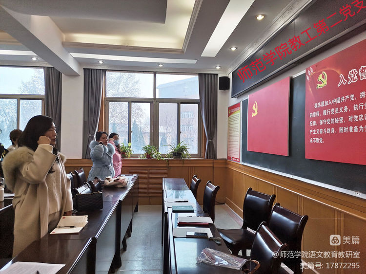 活动第一项,重温入党誓词。许文婧老师领誓。