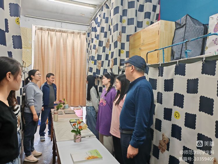 公司党总支书记樊卫兵、员工科长林博带领全体辅导员评比观摩优秀宿舍。本次评比宿舍共计21个,其中女生宿舍17个,男生宿舍4个。