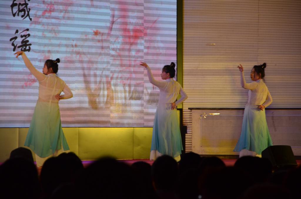 5..舞蹈《小城谣》,曼妙女子,清颜白衫,青丝墨染,若仙若灵,水的精灵般,仿佛从梦中走来。表演者:王振华、张嘉怡、王建瑜。指导教师:许文婧