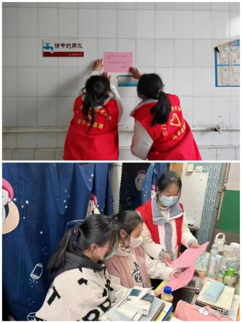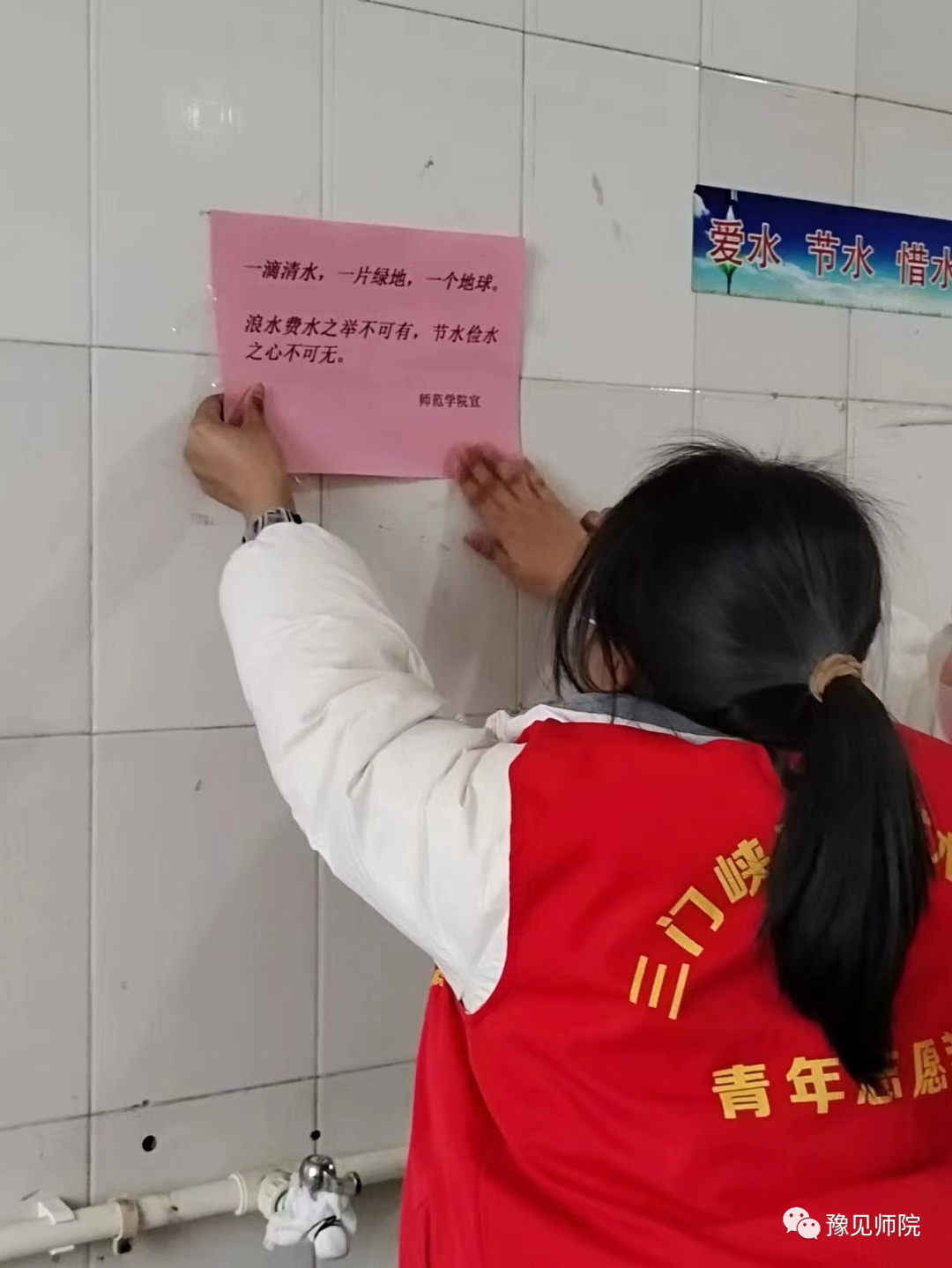 其次,志愿者在寝室门口向路过的同学们发放节约用水宣传单,走进寝室楼张贴节水宣传单,走进同学们宿舍给同学们简述节约用水知识,让节水成为一种生活习惯。