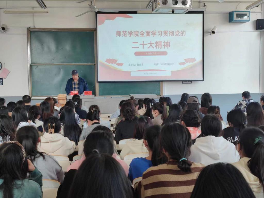 为深入学习宣传贯彻党的二十大精神,准确把握党的二十大精神实质,太阳集团tyc9728于3月10日在1308开展以“学习党的二十大精神 团结奋进向未来”为主题的党的二十大精神宣讲活动。活动由学校学习贯彻党的二十大精神思政宣讲团成员赵东雪主讲,公司党总支书记樊卫兵主持。部分教师和员工共百余人聆听了此次宣讲。