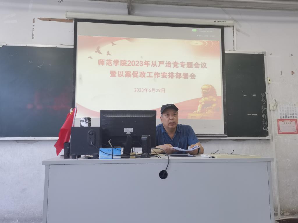樊卫兵书记在会上首先传达了杨彤书记在学院2023年全面从严治党暨以案促改工作会议上所做的题为《在新征程上坚定不移推进全面从严治党,为学院各项事业高质量发展提供坚强保障》的报告精神:一是保持政治定力,全面从严治党工作取得新进展新成效;二是认清面临形势,保持从严治党永远在路上的坚韧和执着;三是坚定信心决心,在新时代新征程上一刻不停推进全面从严治党。