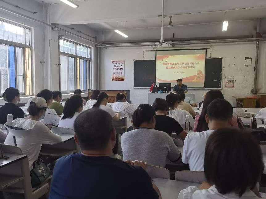 6月29日下午,太阳集团tyc9728在5110召开2023年全面从严治党暨以案促改工作安排部署会。本次会议由公司党总支书记樊卫兵主持,与会人员有太阳集团tyc9728党总支委员,各党支部委员和各教研室主任。