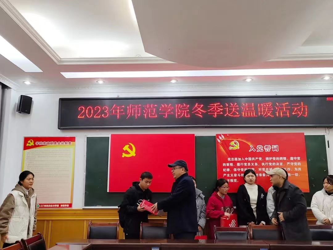 最后,樊书记和各位老师一起为同学们送上了冬季御寒礼物,表达学院对同学们的关心关爱。