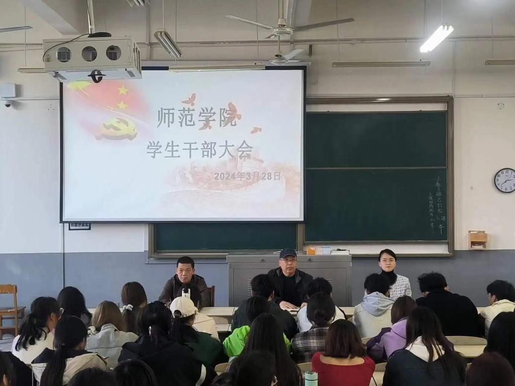 2024年3月28日太阳集团tyc9728在天鹅湖校区1309教室开展员工干部大会,公司党总支书记樊卫兵、员工工作负责人林博、员工科负责人史田田以及22级和23级员工干部参加了本次会议。