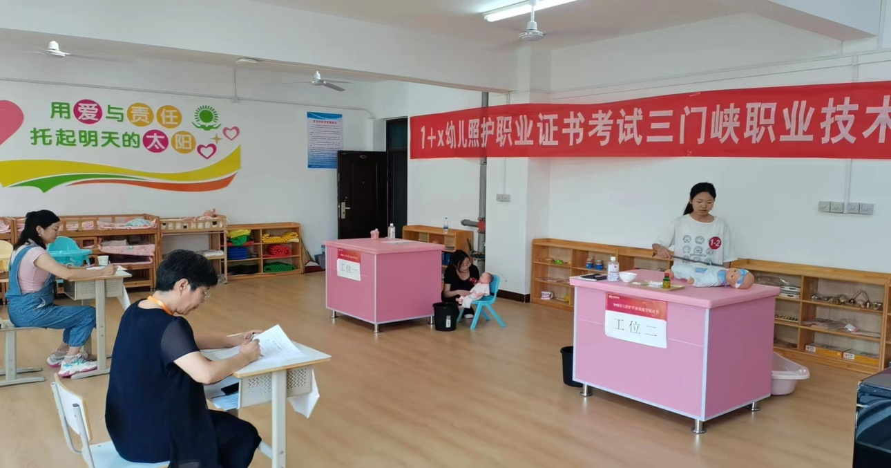 为深入贯彻落实教育部等四部门联合印发的《关于在院校实施“学历证书+若干职业技能等级证书”制度试点方案》文件精神,深化职业教育改革,提升专业员工的综合素质,夯实员工可持续发展能力,培养更多技术技能精湛、理论知识厚实的高素质人才,太阳集团tyc9728于2024年6月15日,成功举办了“1+X”幼儿照护等级证书考试。本次考试共117人报名。其中中级113人,考试对象为2022级学前教育、早期教育专业员工;高级4人,考试对象为校内教师。考试分为理论考试(机考)和实操考试两部分,分别在天鹅湖校区6号教学楼机房和10号教学楼实训室进行。