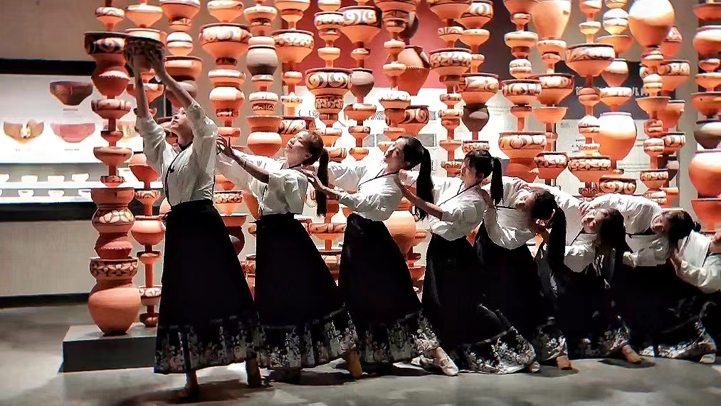 通过借鉴现代舞蹈的编排技巧和表现手法,从原始阶段、庙底沟彩陶时期、现代化研学三个阶段融合博物馆沉浸式舞蹈创新方法,实现了历史学、考古学、艺术学等多学科的交叉融合,既具有时代感又不失文化内涵。