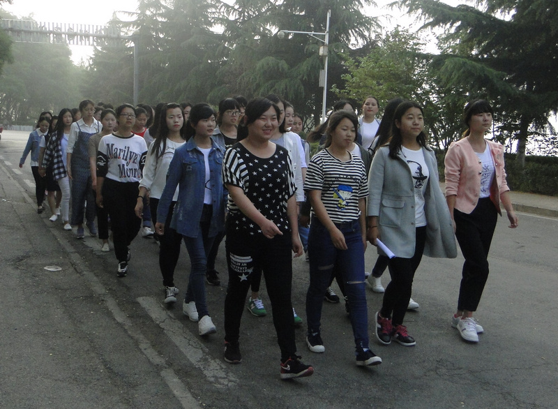 早晨,我们全体集合完毕后,随之,在学长学姐的带领下迈着整齐的步伐出发!在途中,学姐们不断鼓励我们前进,教会我们不放弃。我们也都不甘示弱的喊出口号,并唱出一首首动听的歌。这次活动,使我们这个大家庭更加亲密了,也更懂得了团结。拉练对一个人来说是痛苦的,但当我们回忆起从学校到天鹅湖留下来一连串属于我们脚印的时候,我们都是骄傲的,自豪的。