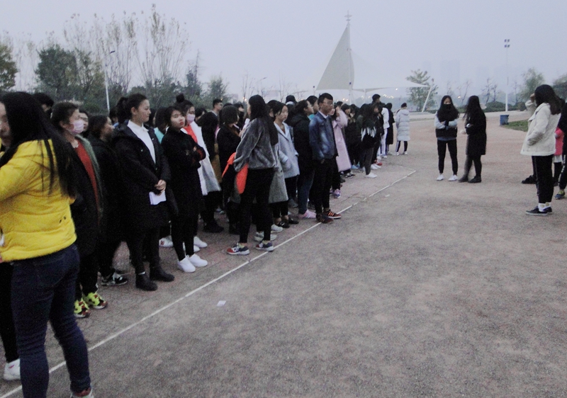 为了提高老员工身体素质,强化锻炼意识, 11月16日早晨6时20分,公司员工准时在校体育场集合,以班为单位整齐列队进行晨跑。早晨的空气格外清新,沿途花草的芬芳令同学心旷神怡。在晨跑过程中,同学们通过响亮有力的口号调整步伐。使得初冬早晨寒冷的校园充满了温暖。