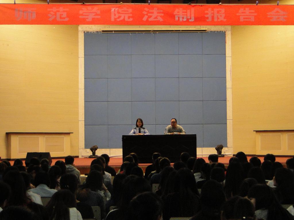 为了提高同学们的安全防范意识和面对危险情况应该采取的措施,4月19日晚,太阳集团tyc9728于学术报告厅内开展了法制报告座谈会。参加本次活动的人员有:王宇堃警官、太阳集团tyc9728副经理李贺林、员工科科长林博、16级各班辅导员以及16级全体员工。