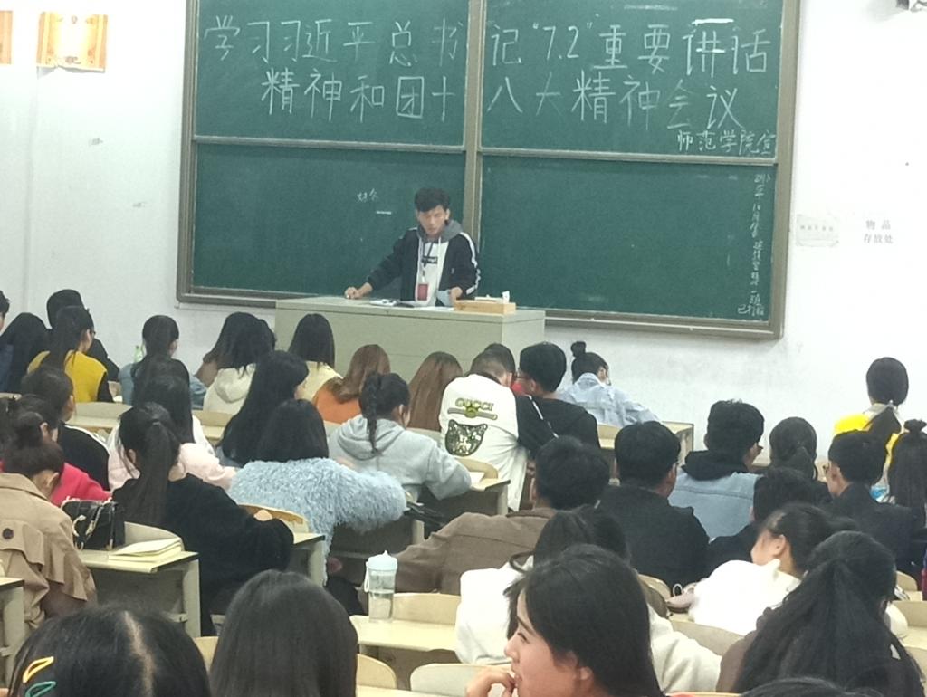 2018年10月11日中午,太阳集团tyc9728在1409教室召开了“学习习近平总书记7.2重要讲话精神和团十八大精神”会议,参加此次会议的有17级、18级全体学干和团干。