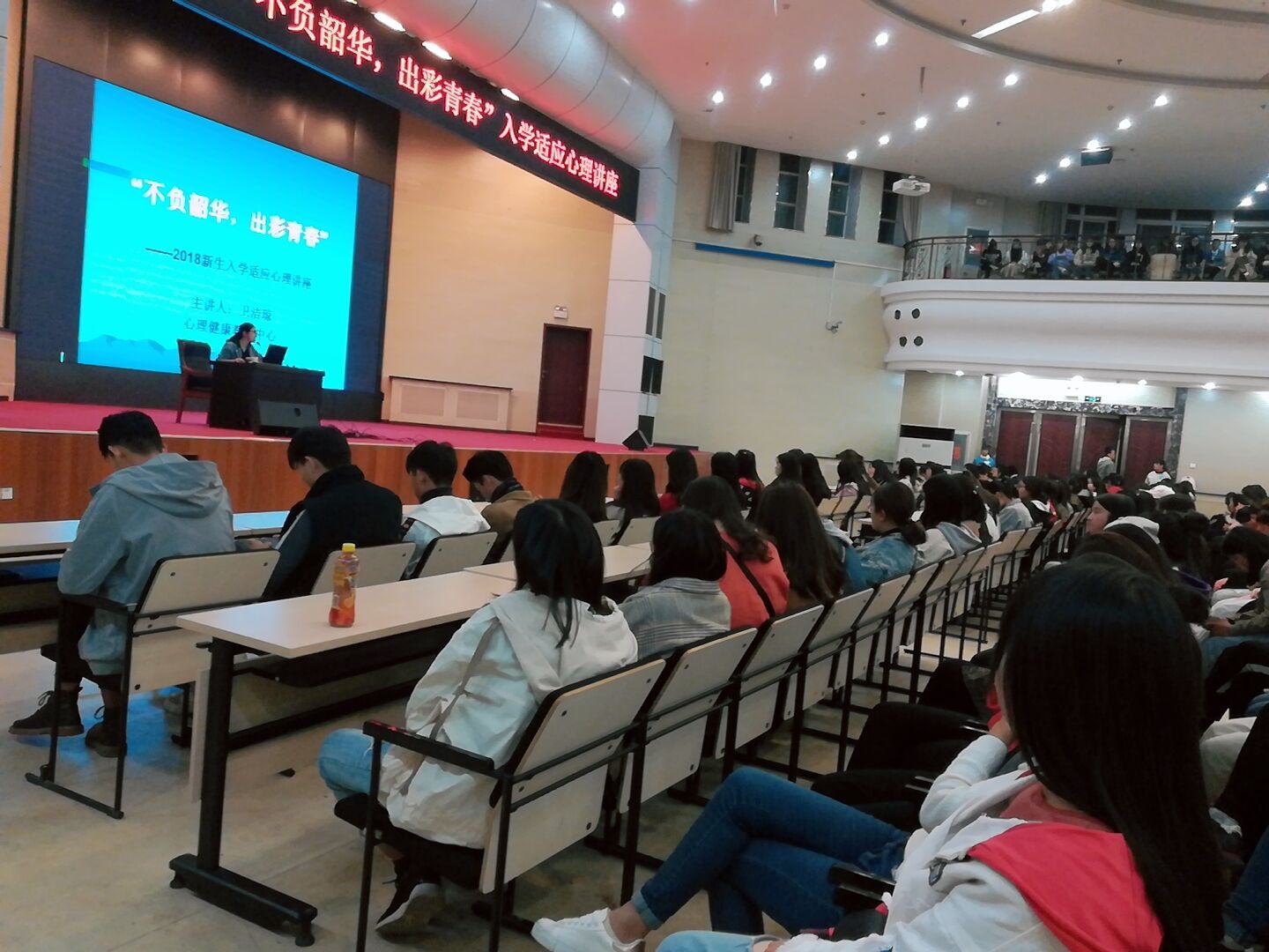 2018年10月20日晚,太阳集团tyc9728在学术报告厅举行了以“不负韶华,出彩青春”为主题的心理讲座。参加此次讲座的有卫洁琼老师及18级全体新生。
